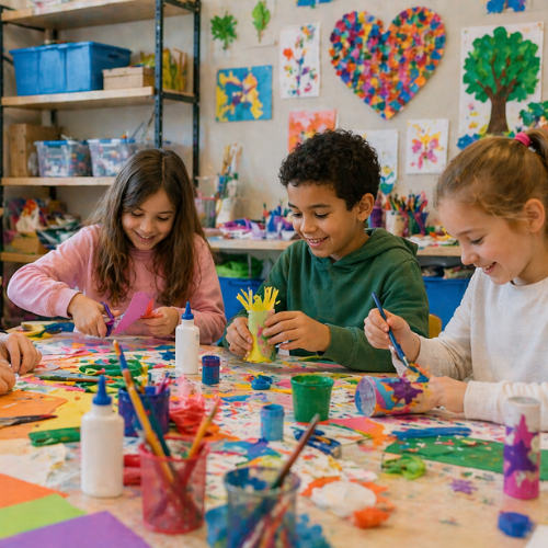 Cet atelier encourage les enfants à développer leur imagination et leur créativité. Par des créations manuelles, ils développent leur savoir-faire.
